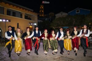 Το βράδυ του Σαββάτου, η πλατεία της Χάλκης πλημμύρισε από ήχους, χρώματα και χαμόγελα. Χορευτικά συγκροτήματα από τη Χάλκη, τη Ρόδο και την Κάλυμνο ένωσαν τις δυνάμεις τους, δημιουργώντας ένα αυθεντικό γλέντι που κορυφώθηκε σε ένα μεγάλο λαϊκό πανηγύρι.