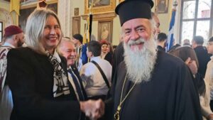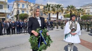 Η κυρία Πατσογιάννη βρέθηκε στην Κάλυμνο, εκπροσωπώντας την κυβέρνηση στις εκδηλώσεις για την Επέτειο της 25ης Μαρτίου, μεταφέροντας παράλληλα ένα επίκαιρο και ηχηρό μήνυμα. Όπως τόνισε, οι έννοιες της ελευθερίας, της ενότητας και της ειρήνης παραμένουν πιο επίκαιρες από ποτέ, σε μια περίοδο όπου η διεθνής πραγματικότητα χαρακτηρίζεται από ένταση και αβεβαιότητα.
