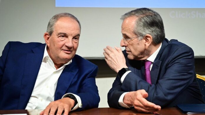 Πέρα από τη μεγάλη κοινωνική δυσαρέσκεια, που αποτυπώνεται σε όλες τις μετρήσεις, η κρίση έχει περάσει και στο εσωκομματικό πεδίο, με την ηχηρή παρέμβαση του Κώστα Καραμανλή και την παρουσία του Αντώνη Σαμαρά σε εκδήλωση στην Παλαιά Βουλή να επιταχύνουν τις «γαλάζιες» εξελίξεις. Στην ομιλία του στην εκδήλωση προς τιμήν της Αννας Ψαρούδα Μπενάκη, της πρώτης γυναίκας προέδρου της Βουλής, ο Κ. Καραμανλής έκανε λόγο για «θεσμική κρίση και κρίση του πολιτικού συστήματος». Μάλιστα, αφού αναφέρθηκε στη μη εμπιστοσύνη των πολιτών προς τους θεσμούς, χτύπησε «καμπάνες» καθώς, όπως σημείωσε, «η Ιστορία μάς διδάσκει ότι τέτοιου είδους κρίσεις, στην περίπτωση της Ελλάδας λόγω πρωτίστως γεωπολιτικών συνθηκών, συμπίπτουν σχεδόν πάντοτε με εθνικές κρίσεις». Οι «βόμβες» του πρώην πρωθυπουργού προκάλεσαν πανικό στο Μαξίμου, το οποίο μέσα από αστείες διαρροές έφτασε στο σημείο να συνδέσει τις δηλώσεις Καραμανλή με την αντιπολίτευση. Μόνο που αυτά που είπε ο πρώην πρωθυπουργός αποτελούν σαφείς αναφορές στην κυβέρνηση.