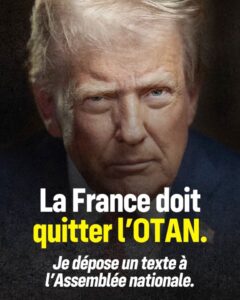 Η Κλεμάνς Γκετέ ανακοίνωσε ότι προτίθεται να καταθέσει πρόταση προς ψηφοφορία στην κάτω Βουλή, με στόχο τον σχεδιασμό αποχώρησης της Γαλλίας από το ΝΑΤΟ, ξεκινώντας από την έξοδο από την κοινή στρατιωτική διοίκηση. Όπως τόνισε, η πρωτοβουλία αυτή βασίζεται στην εκτίμηση ότι οι πρόσφατες ενέργειες των ΗΠΑ απομακρύνονται από τις ευρωπαϊκές αξίες και ενισχύουν υπέρμετρα την επιρροή της Ουάσιγκτον στις στρατηγικές αποφάσεις της Συμμαχίας.